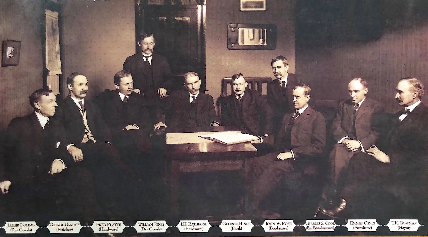 First Board of Commercial Club in 1910, Meeting Upstairs at Rathbone Ace Hardware Store